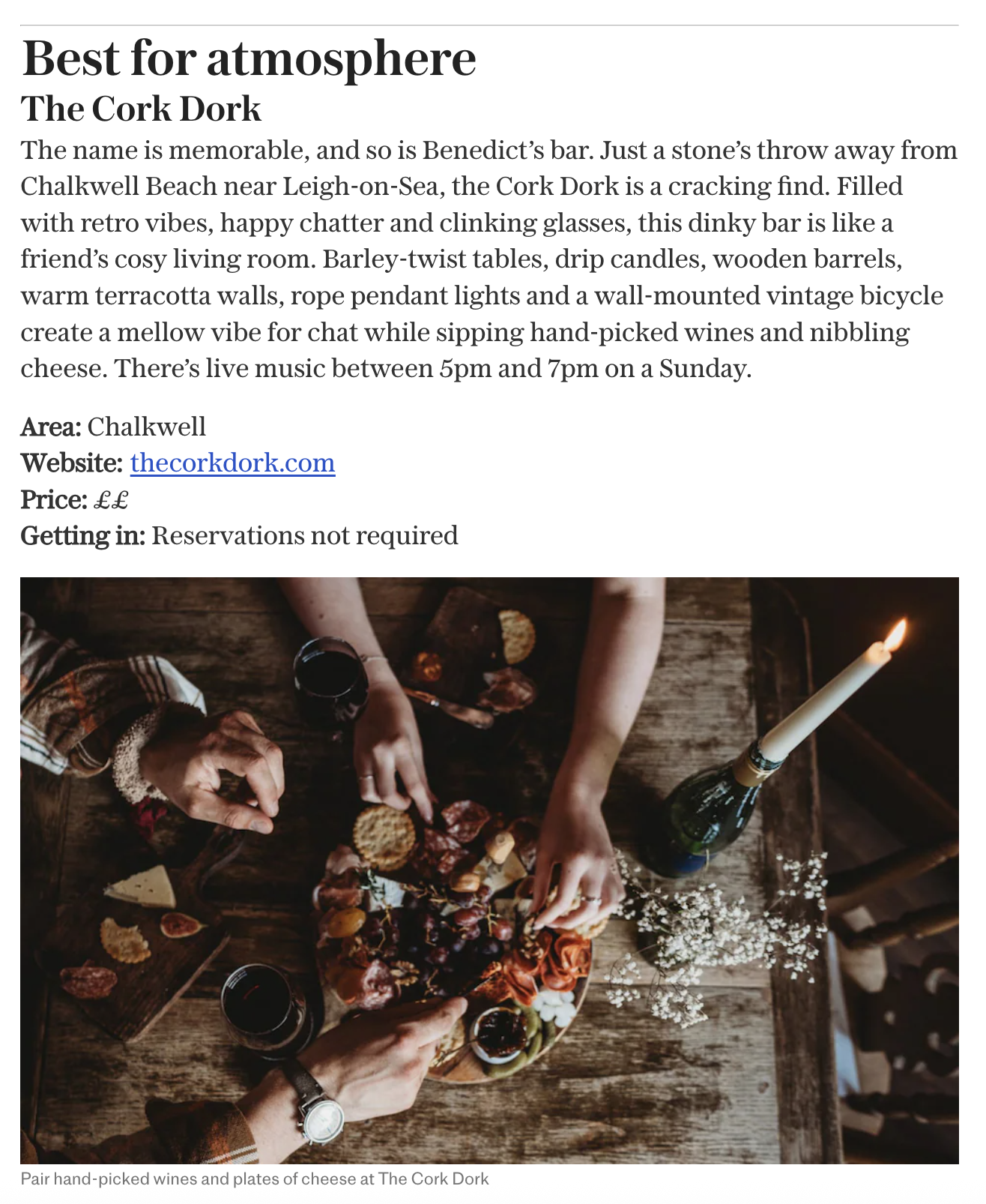 We like to think there’s something for everyone here at The Cork Dork, having received many fond comparisons since we opened, from a candle lit Parisian cellar bar to your Nan’s living room! Whatever it reminds you of, you’ll be warmly welcomed at our cosy wine bar and bottle shops in the heart of Chalkwell and Rayleigh High Street.